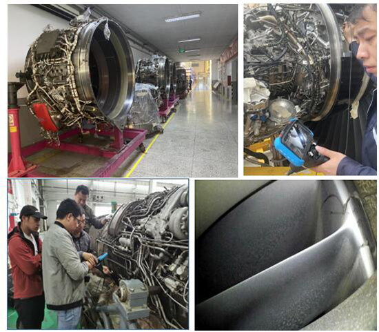 客機(jī)維護(hù)的工程師為提高巡檢和運(yùn)維的工作效率,同時(shí)檢查出發(fā)動(dòng)機(jī)內(nèi)部結(jié)構(gòu)損傷,提早發(fā)現(xiàn)和排查安全隱患,使用工業(yè)視頻內(nèi)窺鏡在大推力航空發(fā)動(dòng)機(jī),渦扇發(fā)動(dòng)機(jī),壓氣機(jī),發(fā)動(dòng)機(jī)葉片,空壓機(jī)葉片、燃燒室、油路和潤(rùn)滑部位進(jìn)行探傷和狀態(tài)檢查。針對(duì)空間狹小和特殊工件的部位,只能用特定鏡頭進(jìn)行觀察測(cè)量。因?yàn)闇u輪發(fā)動(dòng)機(jī)獨(dú)特的內(nèi)部結(jié)構(gòu)為檢測(cè)工作帶來(lái)巨大的挑戰(zhàn),所以要求內(nèi)窺鏡的結(jié)構(gòu)牢固、性能穩(wěn)定,有非常強(qiáng)的導(dǎo)向能力、明暗可按需調(diào)整的照明、清晰的動(dòng)/靜態(tài)畫質(zhì)以及良好的操控便攜性。