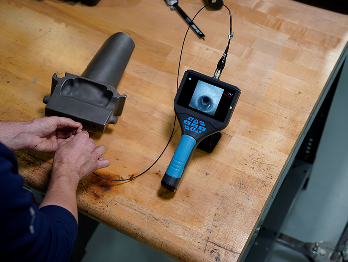 圖片:Yateks B+ 便攜式 2.2 毫米 OD 視頻內窺鏡正在檢查渦輪葉片組件。