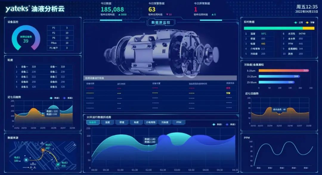 亞泰光電油液監(jiān)測系統(tǒng)通過搭載高精度傳感器和物聯(lián)網(wǎng)技術(shù),實(shí)時(shí)采集油液的溫度、粘度、含水量、金屬顆粒濃度等關(guān)鍵指標(biāo),結(jié)合AI算法進(jìn)行動(dòng)態(tài)分析,精準(zhǔn)捕捉設(shè)備異常信號。無論是發(fā)動(dòng)機(jī)的早期磨損、液壓閥的微小泄漏,還是油液氧化導(dǎo)致的性能下降,系統(tǒng)都能在故障發(fā)生前發(fā)出預(yù)警,讓運(yùn)維從“被動(dòng)搶修”轉(zhuǎn)向“主動(dòng)防護(hù)”。