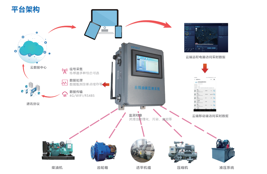 系統可7×24小時不間斷監測油液粘度、水分含量、介電常數、磨損等關鍵參數。一旦檢測到異常趨勢,立即發出警報,使運維人員能夠在故障發生前安排維護,變被動維修為主動預測,避免災難性故障。